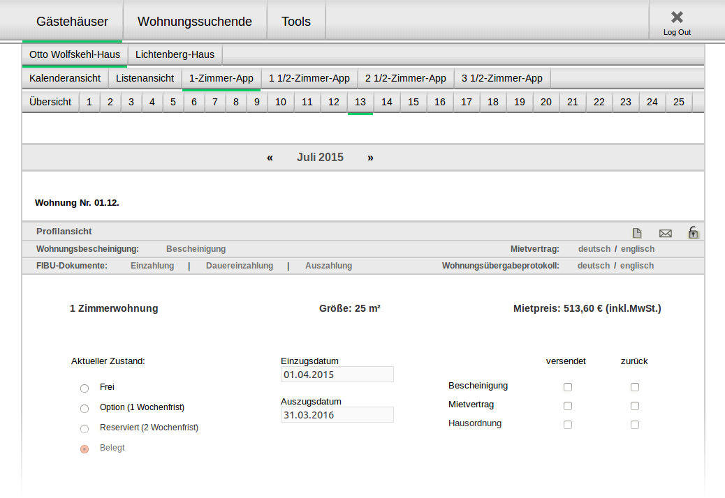 Die Betreuung von Wohnraum in eigenen Immobilien erfordert ein breites Spektrum von Verwaltungsaufgaben. Diese reichen von einem optimal genutzten Belegungsplan bis hin zum Abschluss des Mietvertrags und der anschließenden Endreinigung des Appartements. In der Regel handelt es sich bei den Belegungen in Gästehäusern um kurz- bis mittelfristige Vermietungen, wodurch sich eine kontinuierliche Notwendigkeit an Verwaltungsprozessen ergibt, die sich am sinnvollsten mit einem festen Schema umsetzen lassen.Entwicklung und Zielführung von housingBase